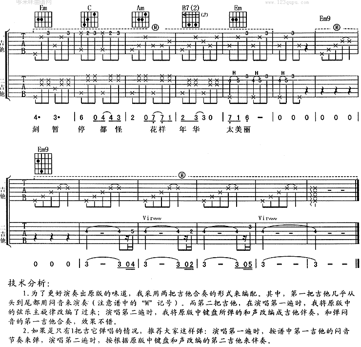 花样年华 吉他弹唱g调双吉他版吉它谱 梁朝伟 吴恩琪 Jitaq 吉他库